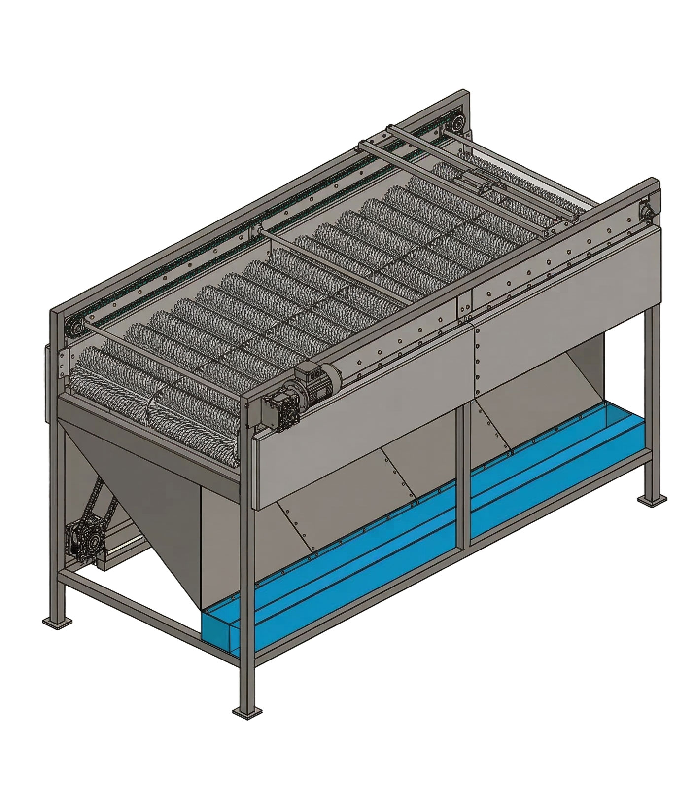 Το σύστημα αποστράγγισης της SK Machines έχει σχεδιαστεί για τη γρήγορη και αποτελεσματική απομάκρυνση της περίσσειας υγρασίας από τον καρπό μετά την πλύση. Μέσω ενός συνδυασμού υδρόφιλων βουρτσών και ισχυρών ανεμιστήρων, επιτυγχάνουμε το ιδανικό προ-στέγνωμα, εξασφαλίζοντας ότι το προϊόν θα στεγνώσει πλήρως και πιο οικονομικά στο επόμενο στάδιο επεξεργασίας.